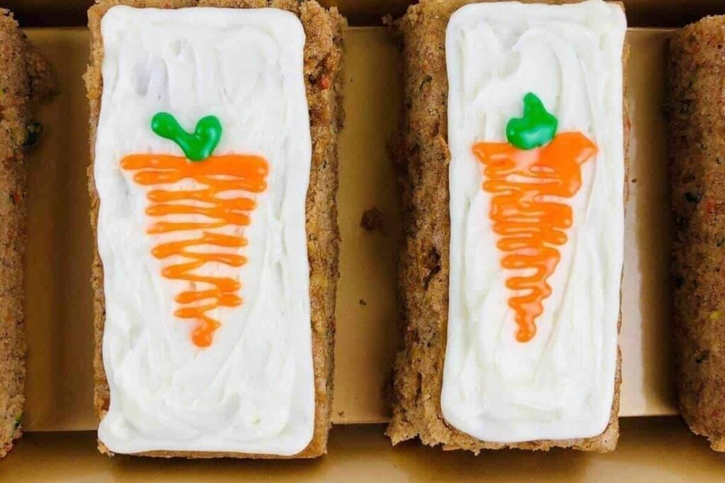 These carrot-shaped cookies bring carrot cake flavor into a handheld treat. A gluten-free base is topped with colorful icing for a festive finish. If you’re looking for more of a unique addition to your carrot cake recipes, these cookies will be a hit.