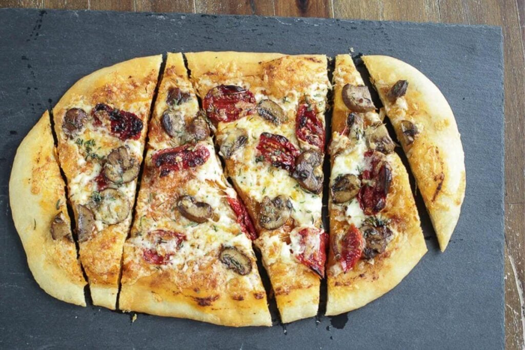 This pizza leans into rich, savory flavors with mushrooms and sun-dried tomatoes layered over a simple base. It’s a good choice when you want something hearty without adding a lot of extra ingredients.