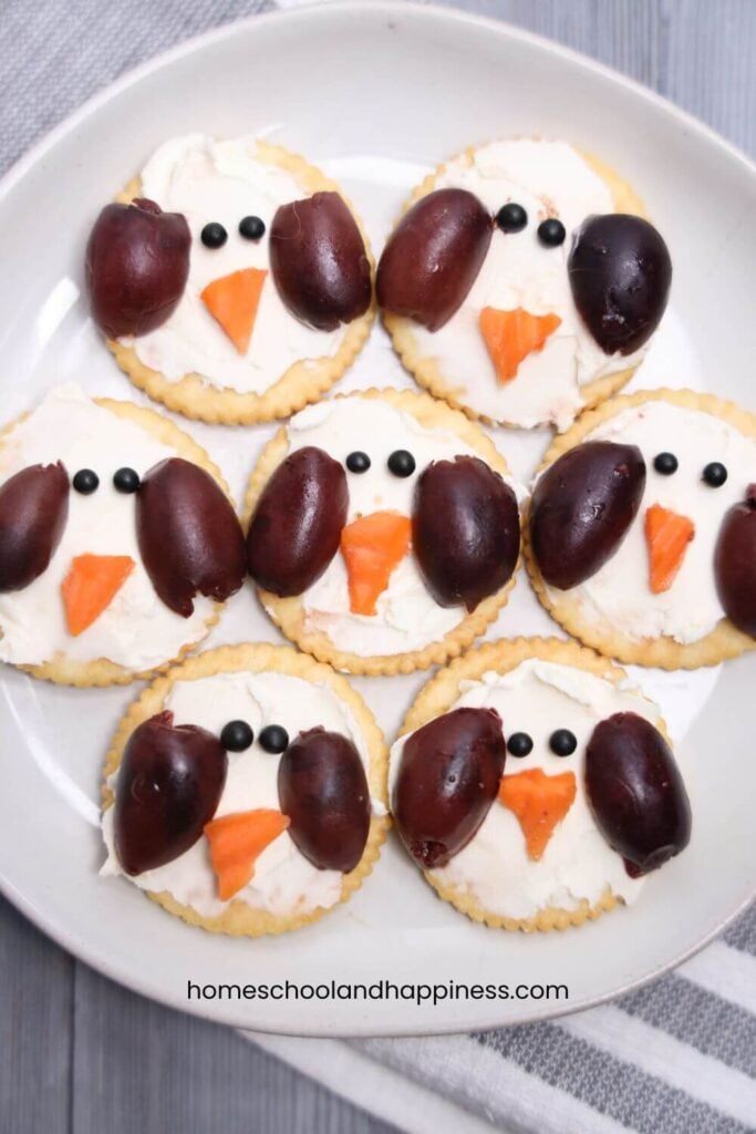 The kids love putting this fun penguin snack together and the Ritz Penguin Crackers come together quickly. To make it easy, just set everything out and let the kids design their own pengiuns.